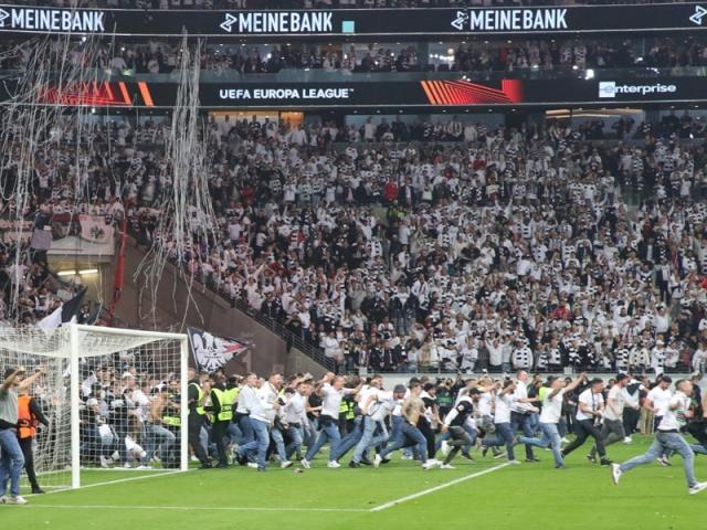 法兰克福球迷的两次激情“入侵”——1999年神奇保级(上图),2022年闯入欧联杯决赛。