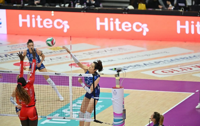 本场比赛,科内利亚诺的进攻火力堪称无解,朱婷与哈克两翼齐飞,轮番发起强势进攻,如同炮弹般击穿布斯托的拦防体系,再搭配副攻的战术偷袭,实现了多点开花的进攻优势,让对手顾此失彼、防不胜防。