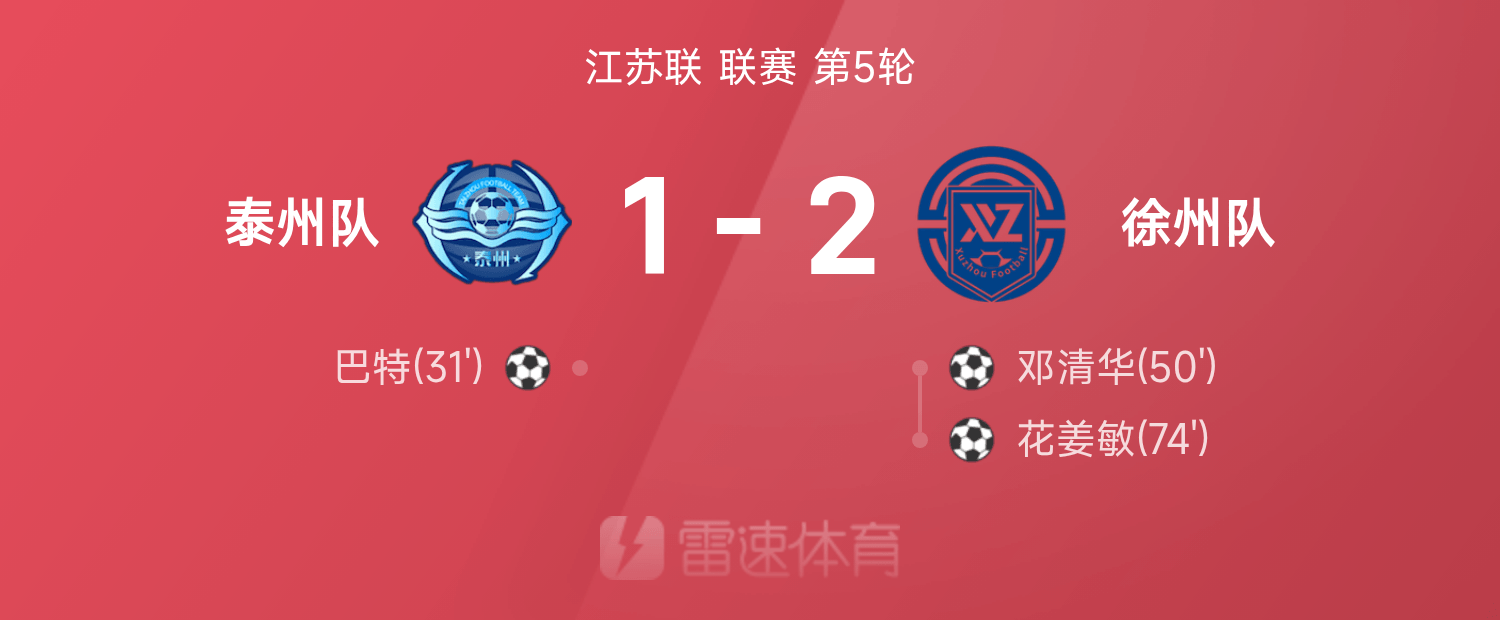 九游娱乐-苏超战报:巴特精彩倒钩难救主,徐州队2-1逆转泰州队