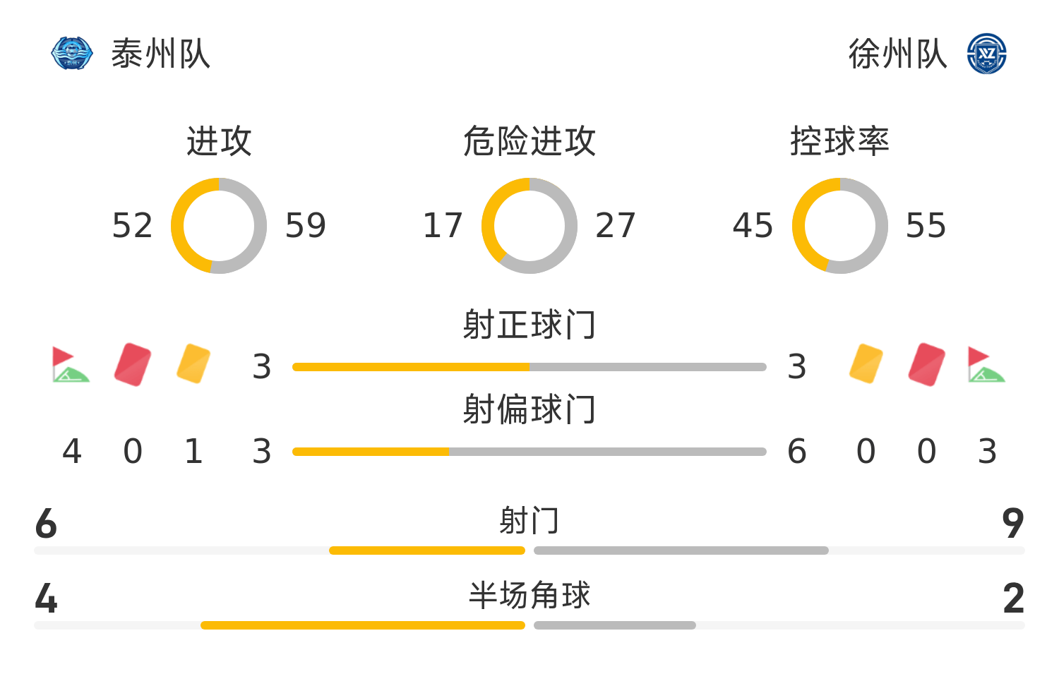 徐州队首发阵容:42-康文博;18-韩亚霖;16-杨颂;5-杜明洋(80’9-姜伟);6-吴洪洋;8-杨浩;10-历广鹏(58’41-邓智文);43-段飞达;12-乔宇(72’11-赵子杰);33-王凯旋(72’13-花姜敏);29-刘毅臣(45’2-邓清华)